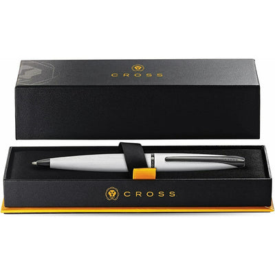 The Cross ATX range boasts a sleek, symmetrical design that is both enjoyable to hold and write with. Its ergonomic structure ensures a smooth writing experience, while the clean brushed chrom finish adds a modern touch.