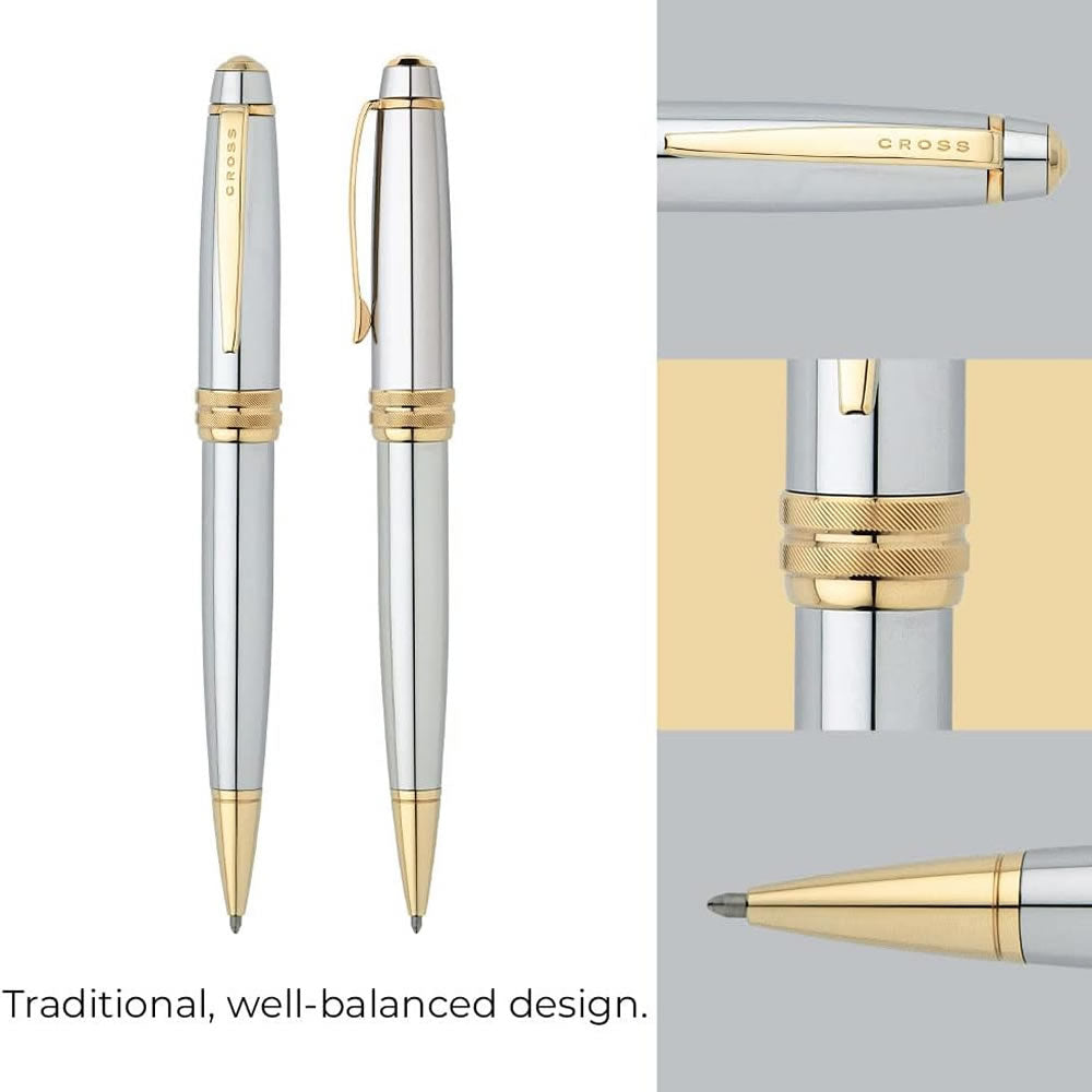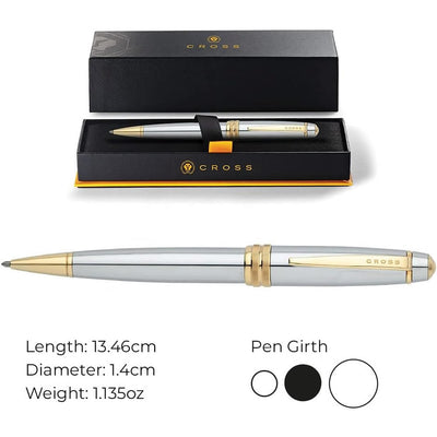 The classic combination of Gold and Silver, this Cross Bailey writing instrument in Medalist has a traditional well balanced profile and is characterised by its chrome barrel and gold accents. Looking for a personal gift? Why not consider an Engraved Cross pen that can be personalised with the recipients or your own name or even a simple message such as "Happy Birthday!" to create a gift that is truly bespoke.