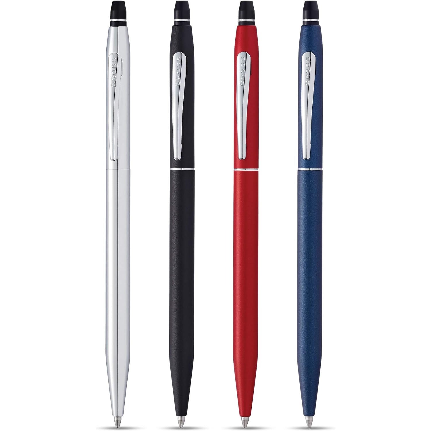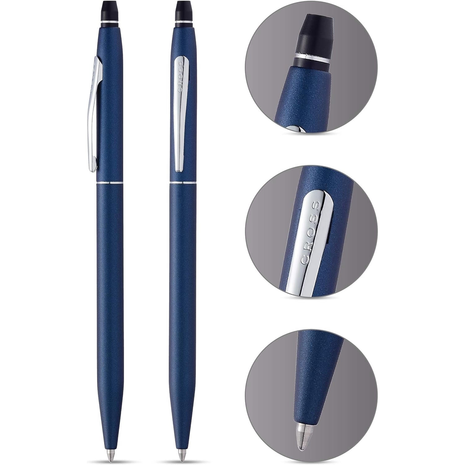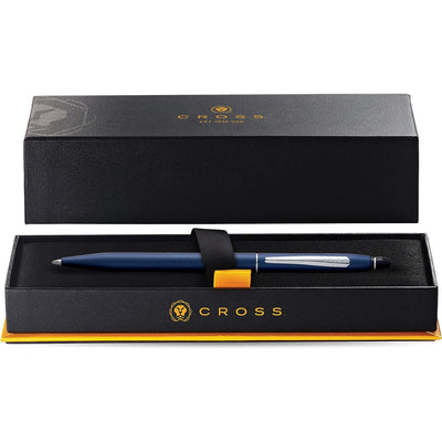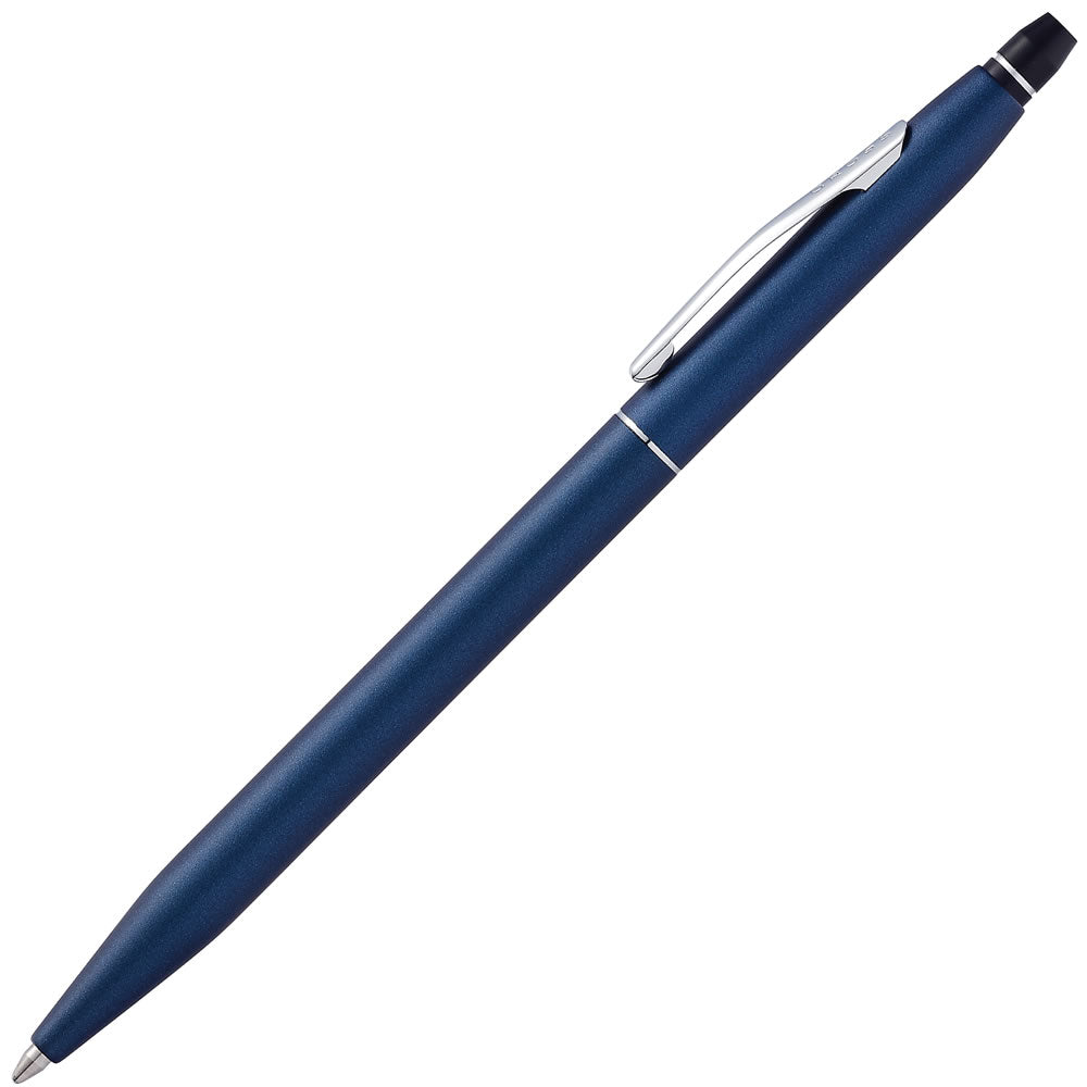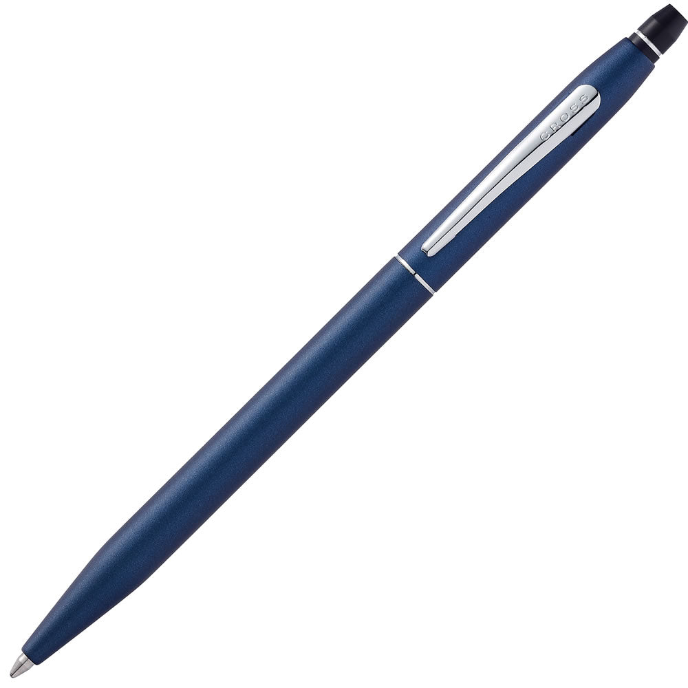 The Classic Cross silhouette with a twist, or should we say Click? This pen follows on from the Cross Century with its slender silhouette and smooth line design but it has a an easy use to click mechanism that propels and repels the nib, making writing easy, comfortable and effortless. A modern update for an enduring Cross design, this navy blue edition is a beautifully deep blue with tiny silver specks that give it a stunning glimmer effect.