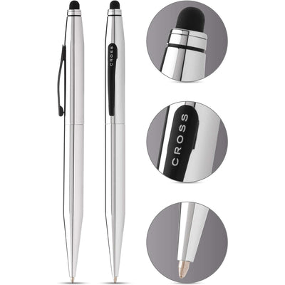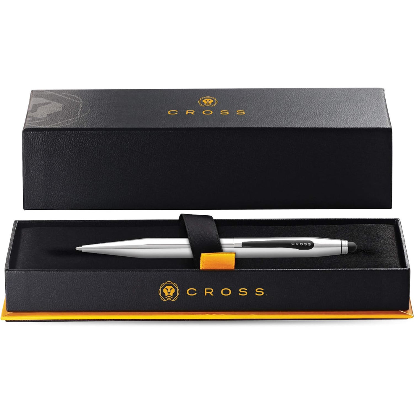 The Tech2 collection from Cross seamlessly combines the old with the new by taking reliable Cross pens and combing them with a stylus to use with our modern technology. This polished chrome ballpoint has contrasting satin black appointments and a narrow precision stylus on its tip that is compatible with most capacitive touchscreen devices such as phones and tablets.