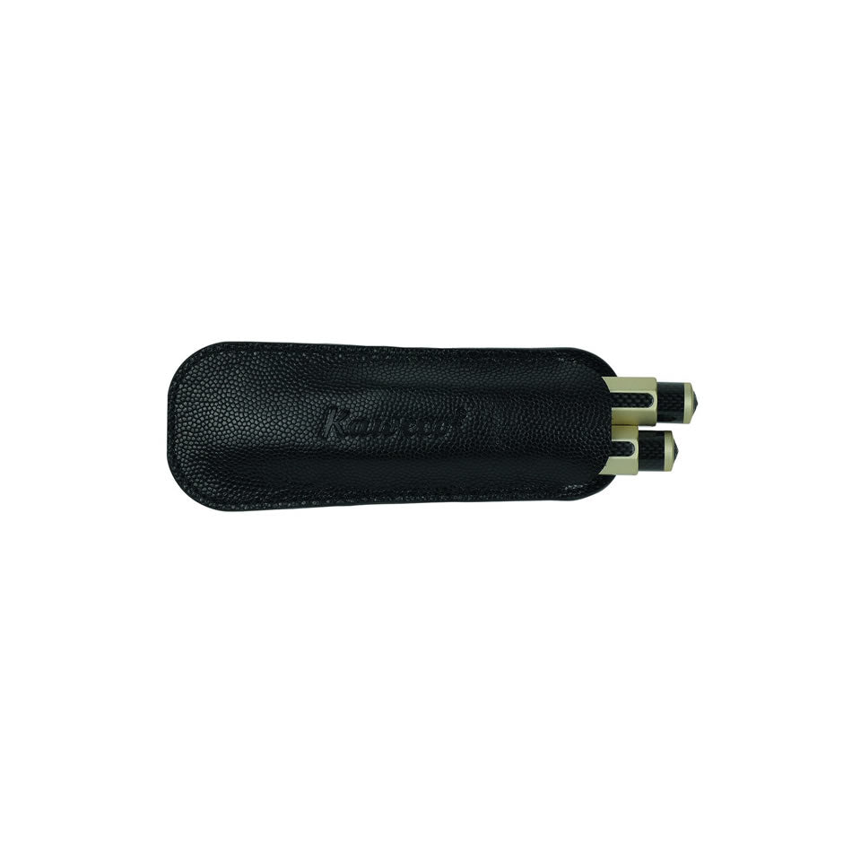 The Kaweco ECO Leather Pen Pouch is made to perfectly fit 2 Kaweco Sport pen or pencil, with or without clips and is handmade of soft black leather with 'Kaweco'embossed on the front.