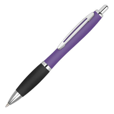 This purple contour ballpen is a stylish metal ballpoint pen with a modern ergonomic curved design. The pen barrel features a soft touch rubberised finish which gives the pen a premium feel. These pens engrave in a mirror silver finish which matches the trims beautifully.
