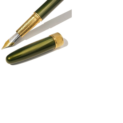 Experience the creative energy of Ferris Wheel Press with the Juniper Moss fountain pen. Found within the Joule range, this unique pen features some captivating details and double-coated genuine gold plating. The full-size No. 6 two-tone steel nib provides a satisfying ink flow and a joyful writing experience with low feedback. Crafted in brass and finished in shimmering Snowfall Lacquer, this full-sized pen is a must-have for any writing enthusiast.