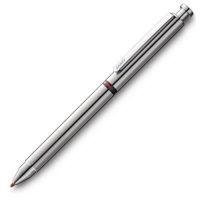A slender, cylindrical writing instrument with a spring-loaded strip steel clip, this Lamy ST Matte Stainless Steel Multi-Function Pen combines the design technology of Lamy's ballpoint pens and mechanical pencils into one writing device. This sleek looking pen is easy to use with its twist-action mechanism.