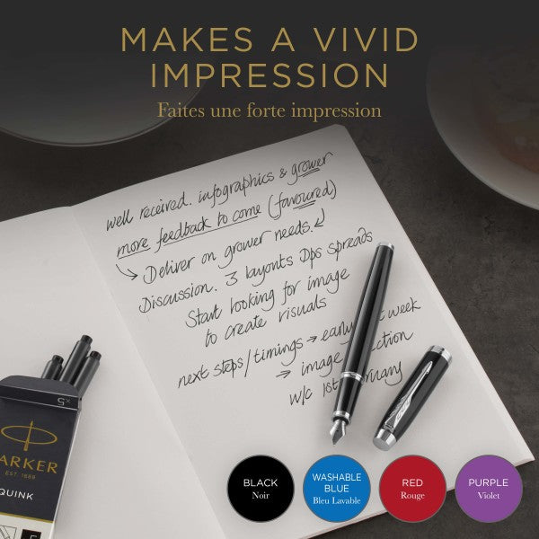 Quink meaning quick and ink is a revolutionary ink from Parker. A few of Its unique features are it resists water, it doesn't clog, it is quick drying and it has smooth quality ink flow.