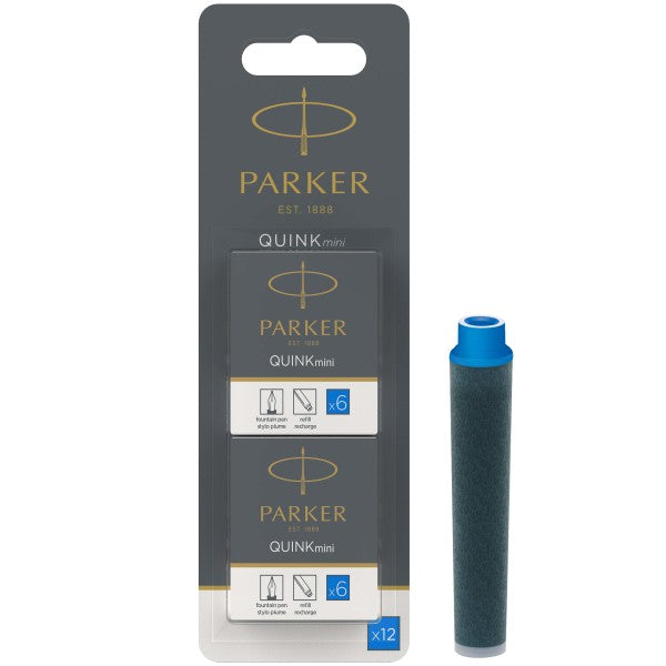 This Pack of 12 Blue Mini Quink Ink Cartridges are suitable for all Parker Pens.
