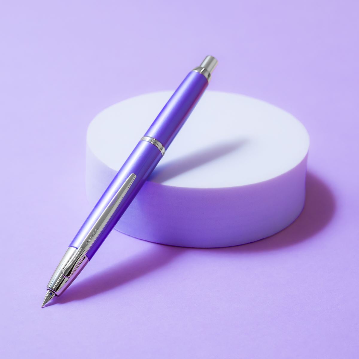 Available in over 30 finishes the world is your oyster and there is a Pilot Capless to suit every style. This pen from the Decimo collection is thinner and lighter than a standard capless and has a metallic violet lacquer with complementary silver trims.