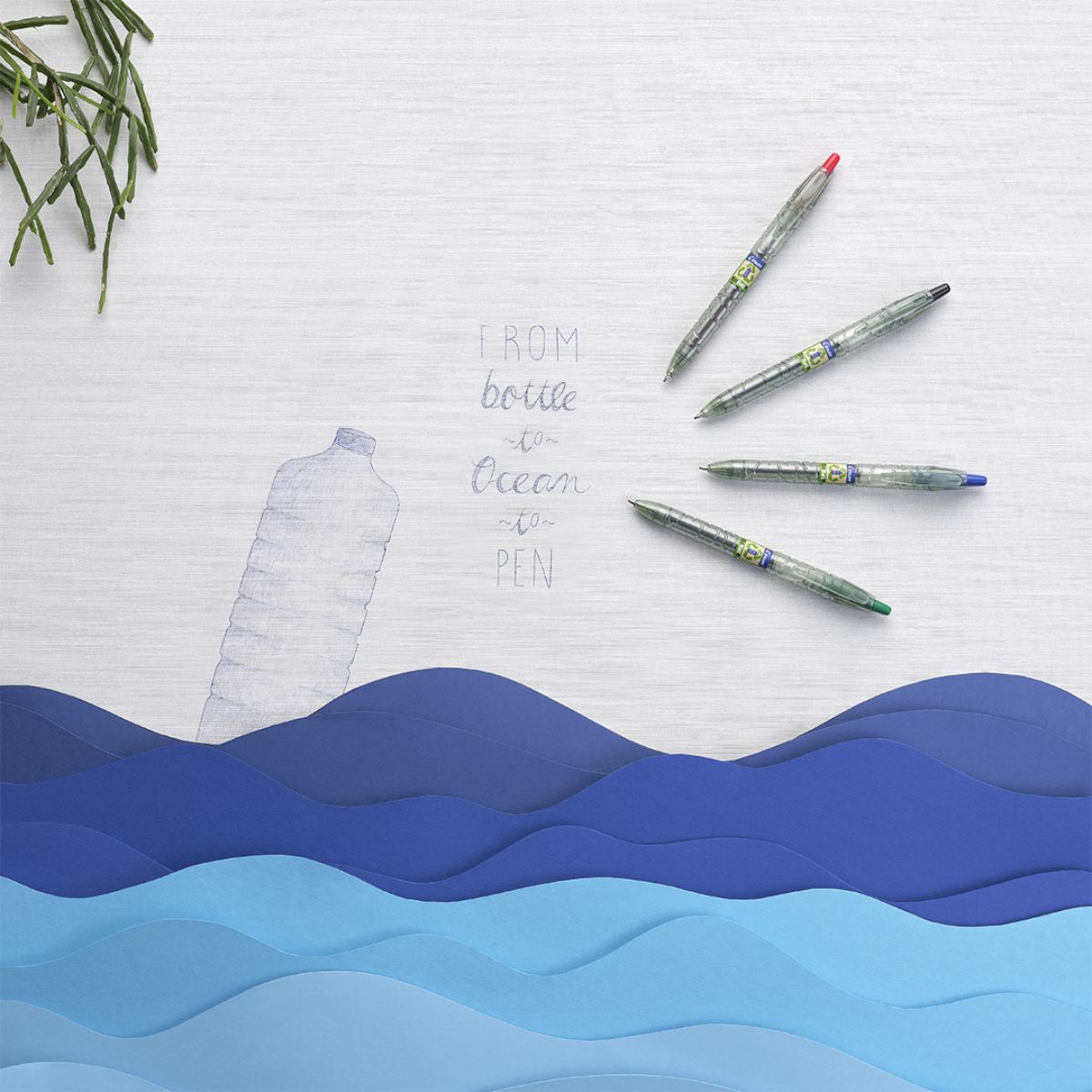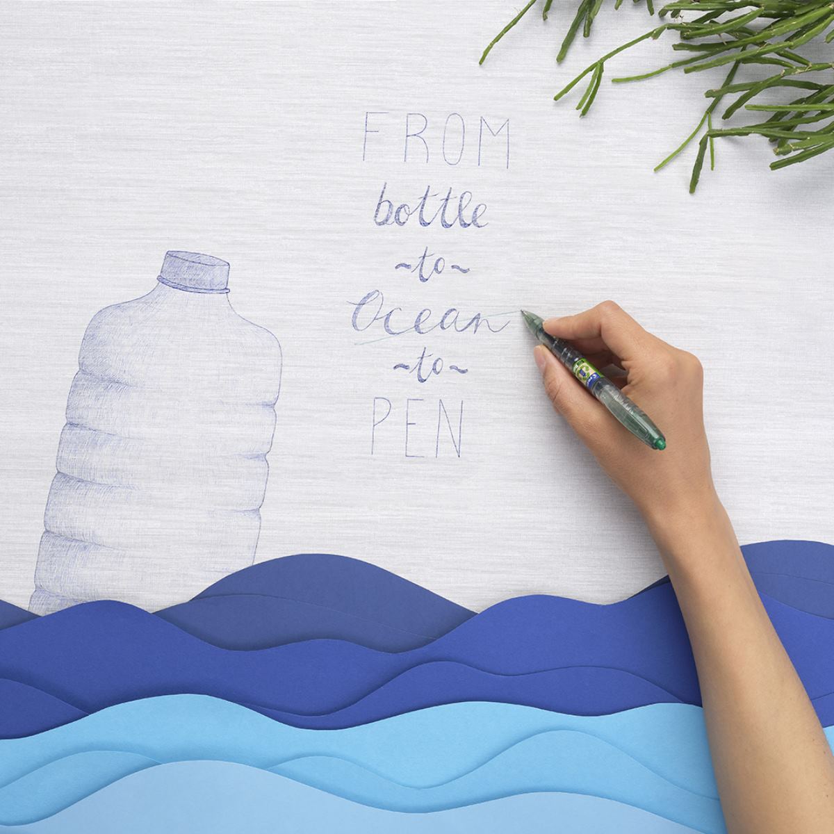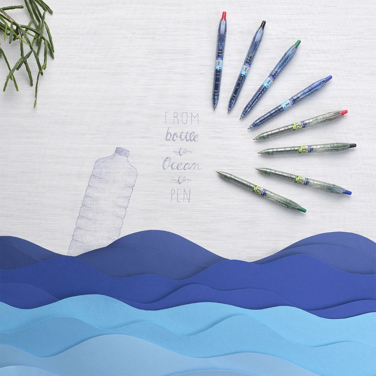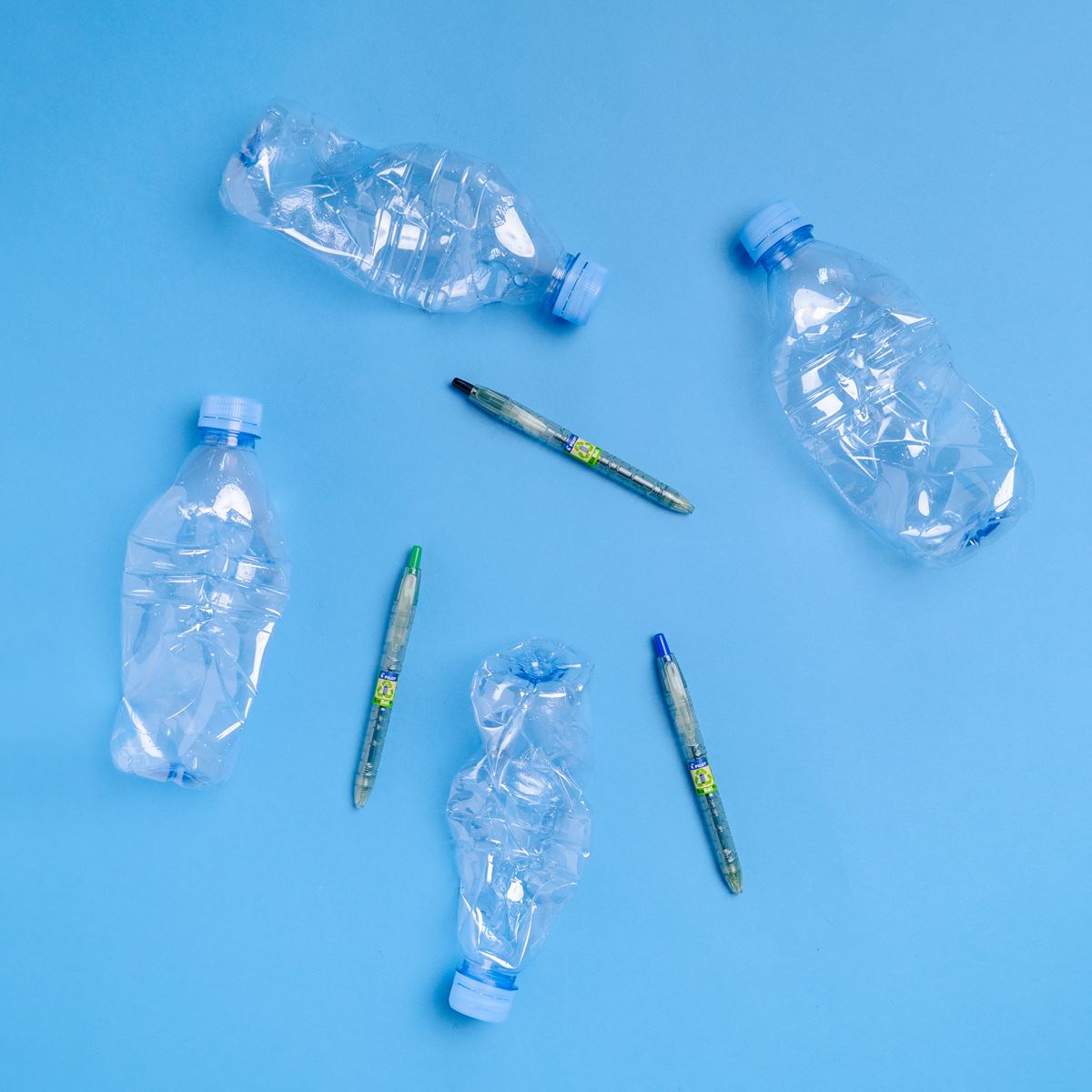 These pens are also designed to replicate the design and shape of the plastic water bottles they are made from.
