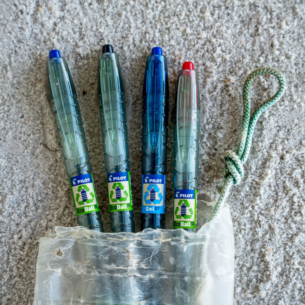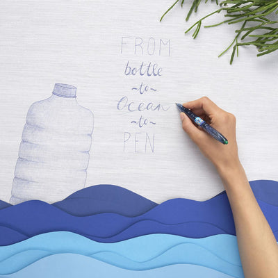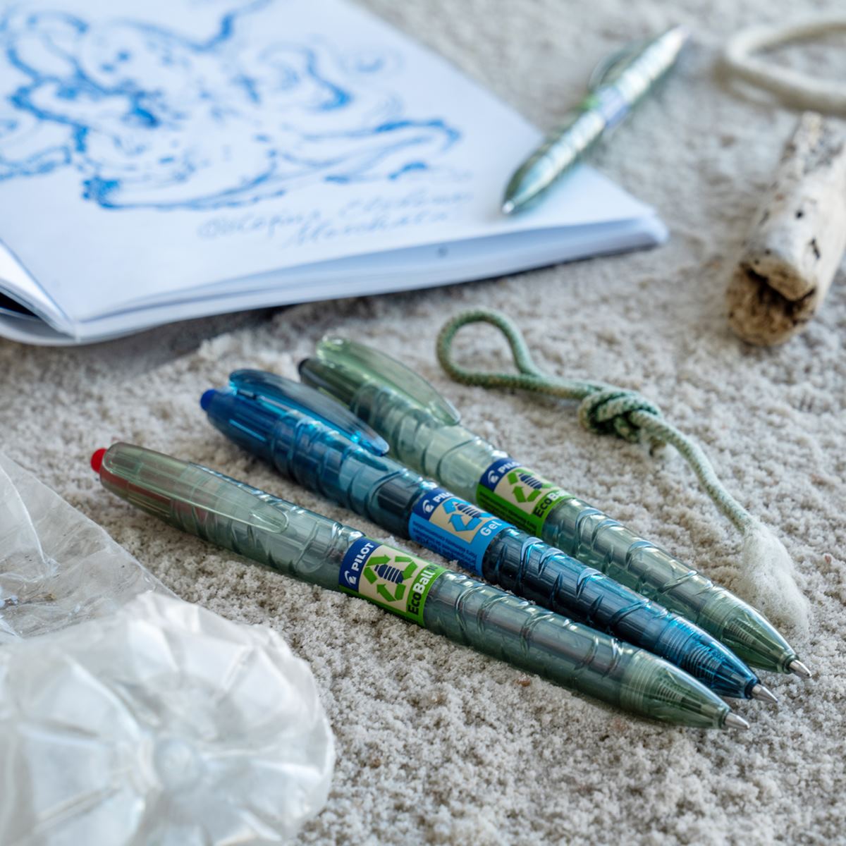 Reclaim - The Pilot B2P Gel Rollerball is made of 89.8% recycled plastic, mainly bottles with 2.5% being reclaimed ocean plastic collected from oceans, beaches, rivers and lakes