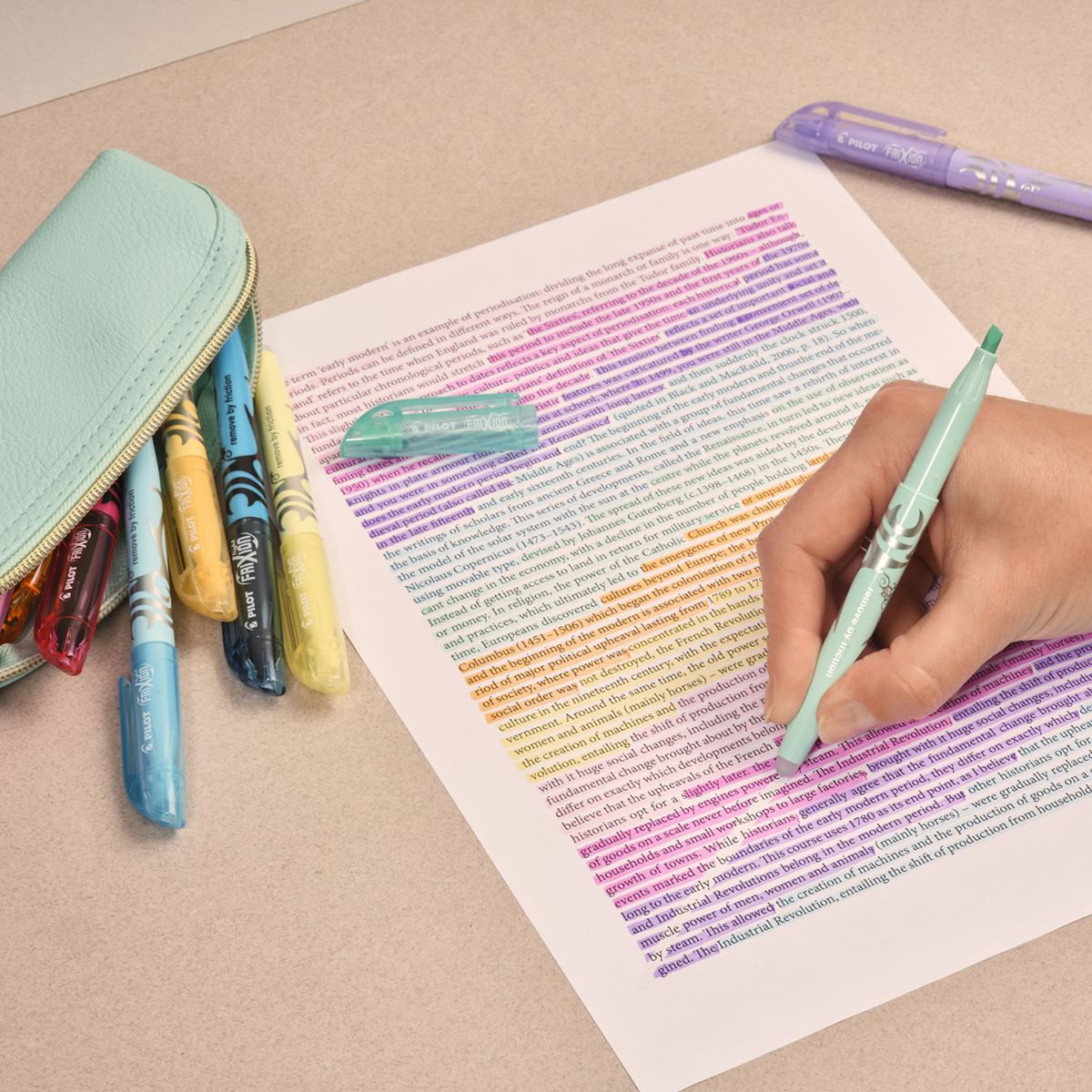 Highlighted the wrong piece of text? Worry not! The Pilot FriXion erasable highlighter is here to save the day. Available in 5 pastel shades these pens have thermo senstive ink which when rubbed with the integrated eraser is removed from the page saving your work and allowing you to make and fix your mistakes.