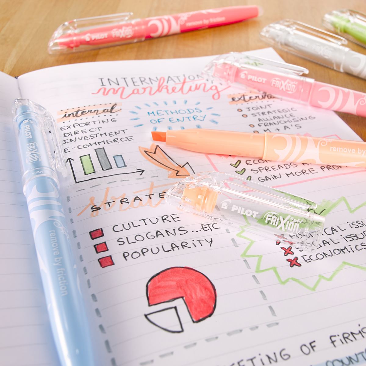 Highlighted the wrong piece of text? Worry not! The Pilot FriXion erasable highlighter is here to save the day. Available in 6 pastel shades these pens have thermo-sensitive ink which when rubbed with the integrated eraser is removed from the page saving your work and allowing you to make and fix your mistakes.