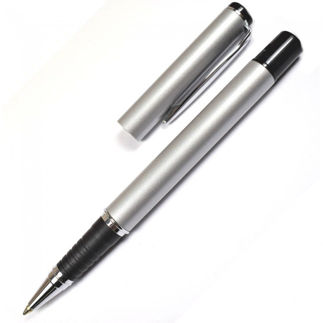 The engraving on this pen shows as a dark silver colour which matches the pen beautiful and stands out wonderfully on the light silver barrel.