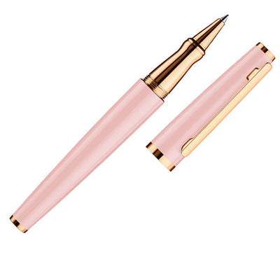 Rollerball Pens are very similar in their mechanics to a ballpoint pen. They both use a small ball bearing in the tip to 'roll' the ink onto the paper. The main difference is their ink viscosity. A rollerball pen uses wetter ink to provide a smoother writing experience than a ballpoint - closer to that of a fountain pen.