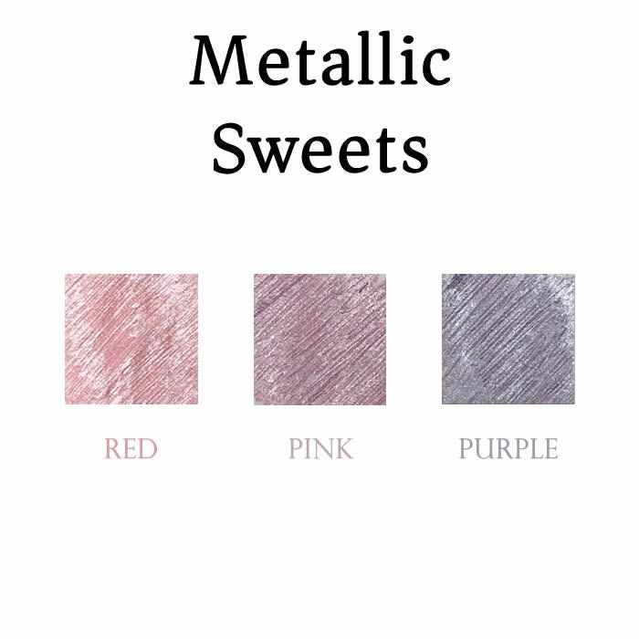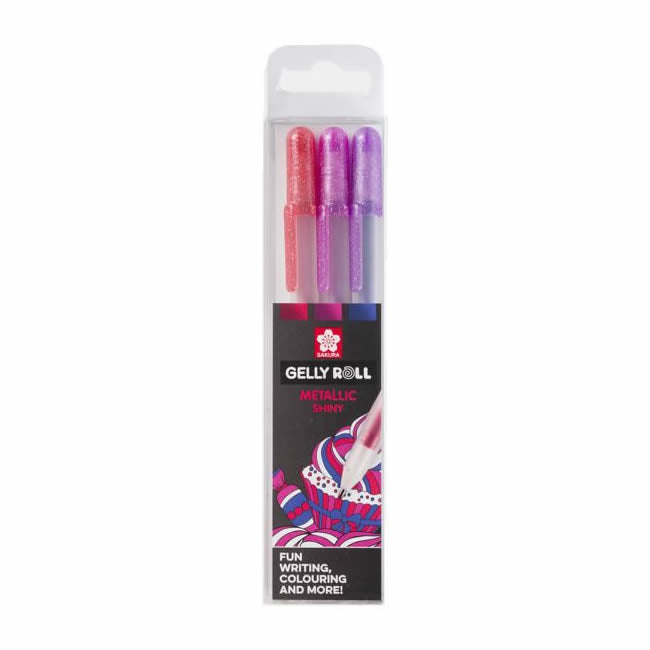 The three sweetest colours of true shiny Sakura Gelly Rolls in one set: Purple (524), Pink (520) and Red (519) Metallic gel pens
