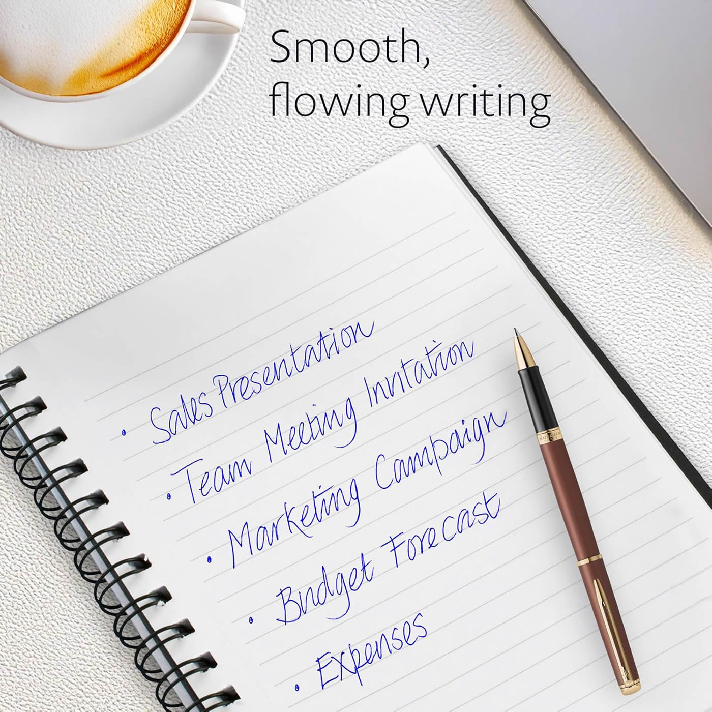 The barrel and cap are finished in a lustrous metallic lacquer, accented with delicate light gold-plated hardware. Featuring Waterman’s signature double-pronged clip, this pen exudes timeless style. The precision-engineered rollerball tip, combined with smooth-flowing liquid ink, delivers a consistently effortless writing experience.