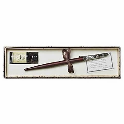 This exquisite calligraphy set includes a gorgeous wooden pen with stunning pewter detailing.