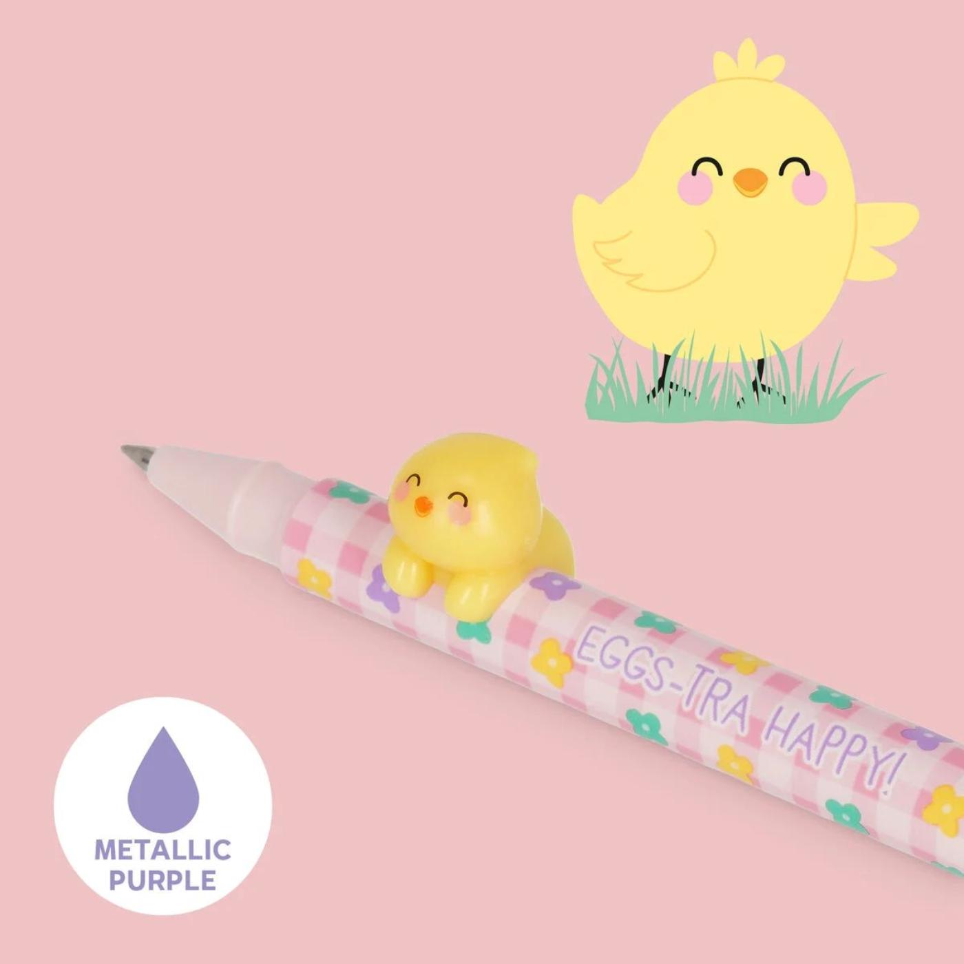 • Set of 2 gel pens with Bunny & Chick decorations