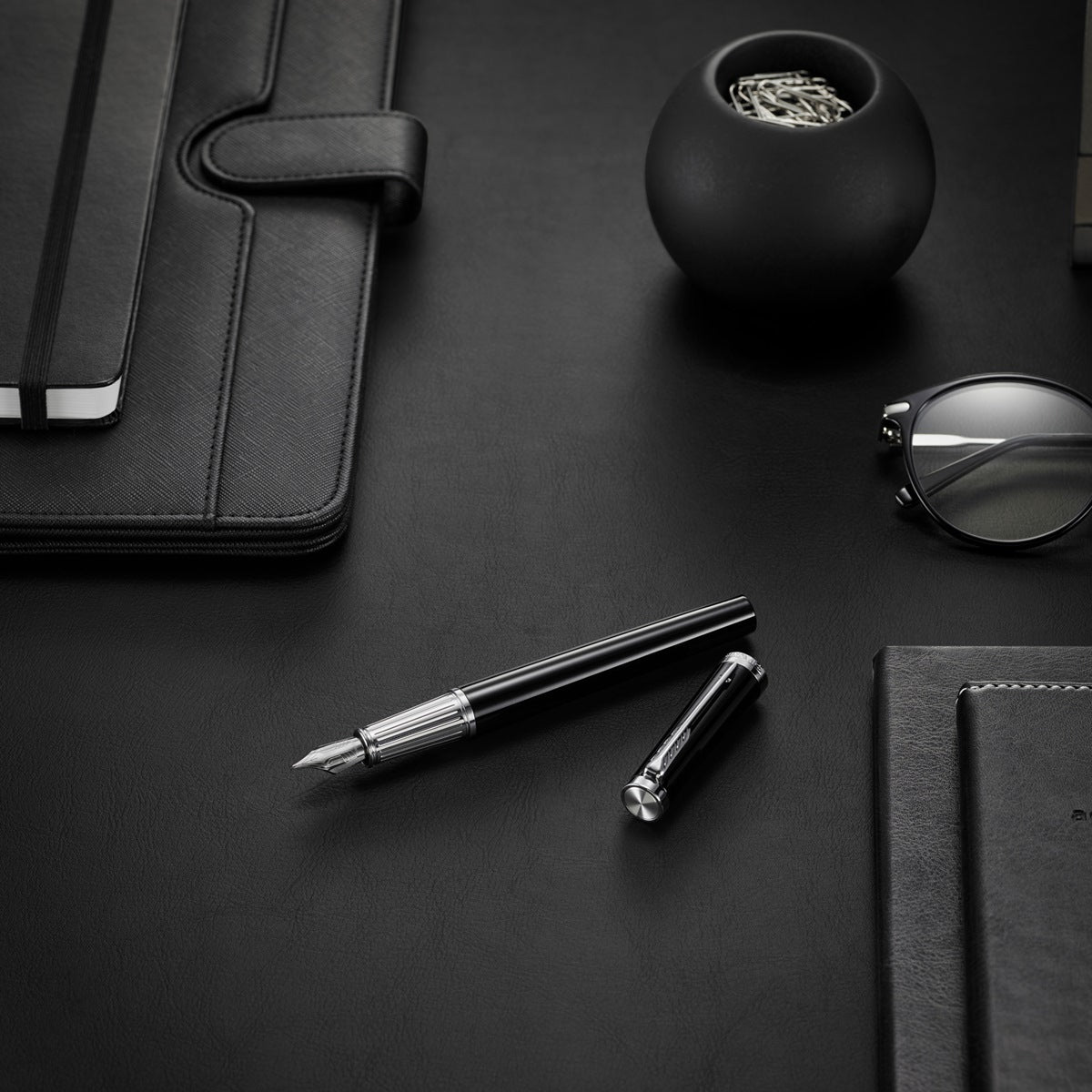 Make bold statements with the Parker Ingenuity Black Chrome Trim Ballpoint Pen. Showcase your success with its strong profile, glossy black lacquer, and chrome trims. This professional pen is presented in a luxurious Parker gift box, perfect for gifting. Take charge and professionally convey a powerful presence! Keep the Parker Ingenuity Black Chrome Trim Ballpoint Pen close to you and it will serve as a reminder of your hard work and dedication to success. Its sleek, timeless design is sure to make a statement in any professional setting. Get ready to take your career to its maximum potential with this sophisticated and opulent pen.