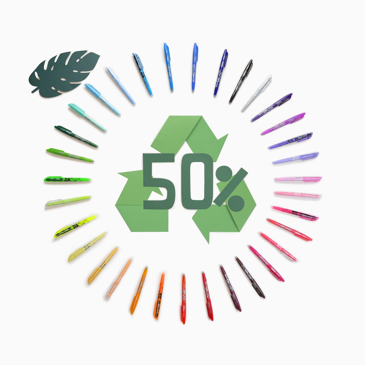 • -71% CO2 impact for 1x Frixion Ball + 3 refills compared to 4x Frixion Balls made without recycled materials