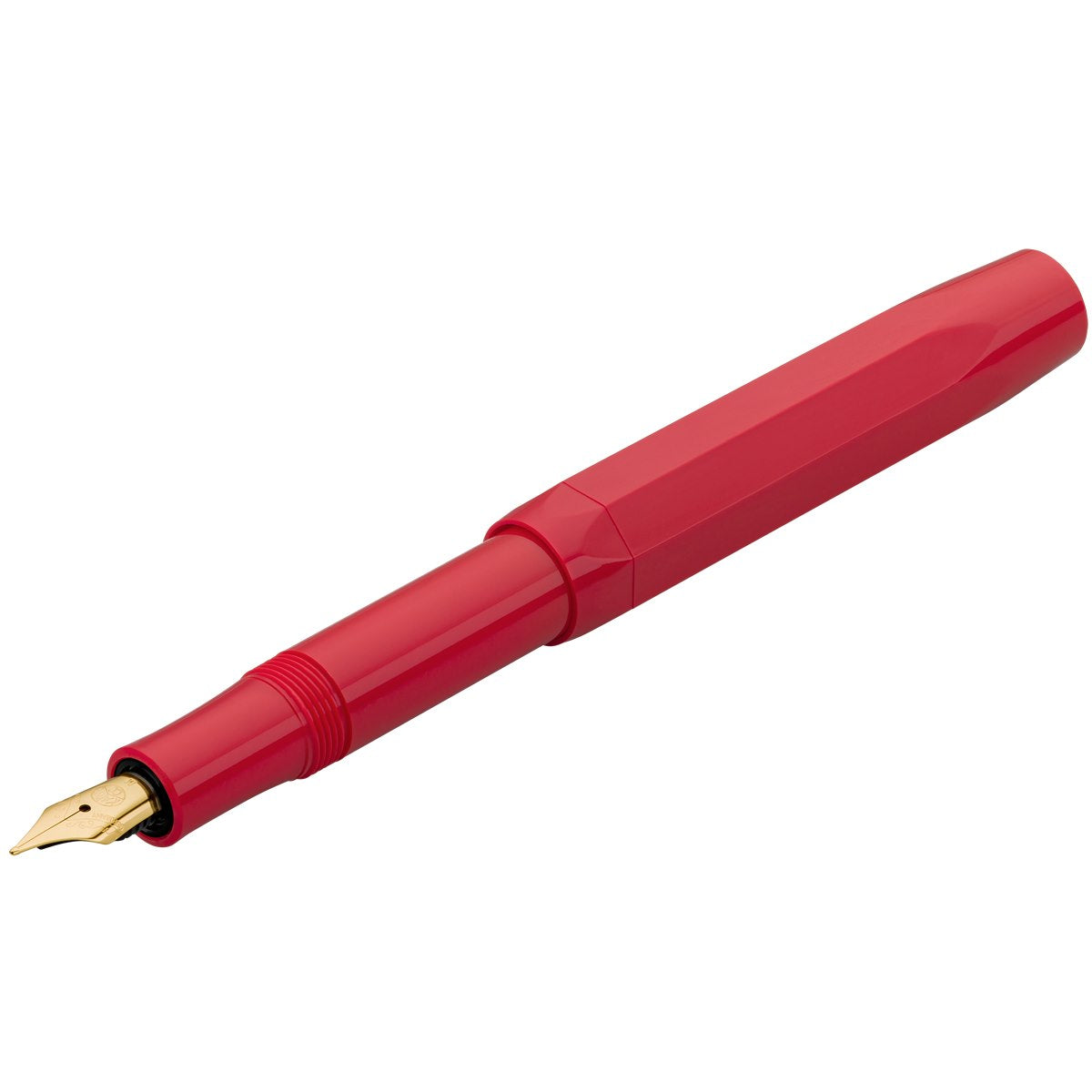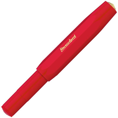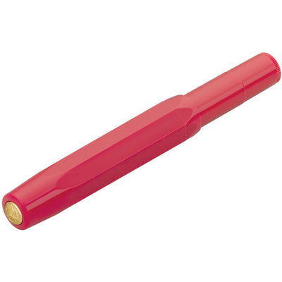 The Kaweco Classic Sport Red Fountain Pen closely follows an original 1935 octagonal design made from ABS injection-moulded plastic complimented by its gold accents. The gold-plated stainless steel nib is made by Bock of Heidelberg and is available in 5 sizes from extra fine to extra broad. The cleverly thought out oversized cap arrangement creates a small closed pen at just 105mm long but when open emerging into a full length pen at 133mm long.