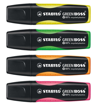The same advantages as the ever popular STABILO BOSS ORIGINAL, the GREEN BOSS is perfect for those trying to do their bit for their environment as it is refillable and manufactured using 83% recycled plastic. Help save our environment by using products out of STABILO'S GREEN range.
