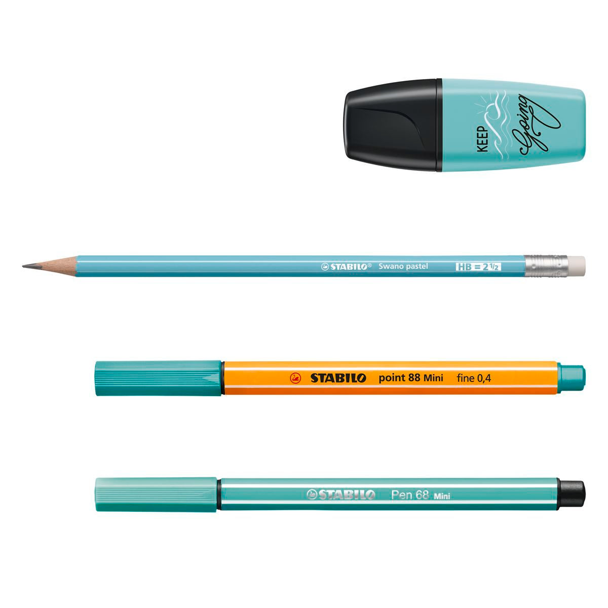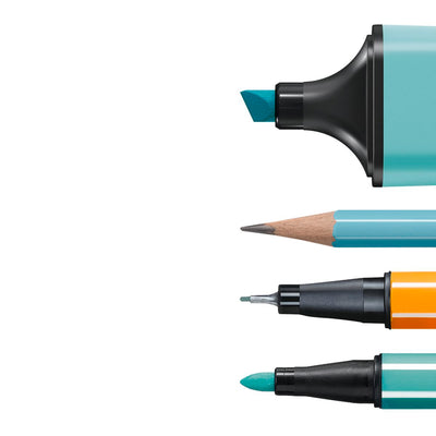 The point 88 has a thin metal encased tip for fine lines such as outlining or small details, the BOSS MINI is great for highlighting or underlining with its 2mm and 5mm tips, the Swano Pastel Graphite Pencil provides the ability to draw, write and sketch and the Pen 68 Mini has a medium sized fibre-tip for larger areas and strong colour packed lines.