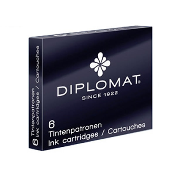 Keep your Diplomat Fountain pen filled with this pack of 6 Black Ink Cartridges. Suitable for use with the following Diplomat Fountain pens: