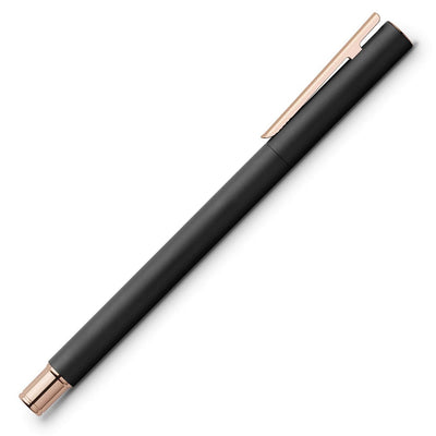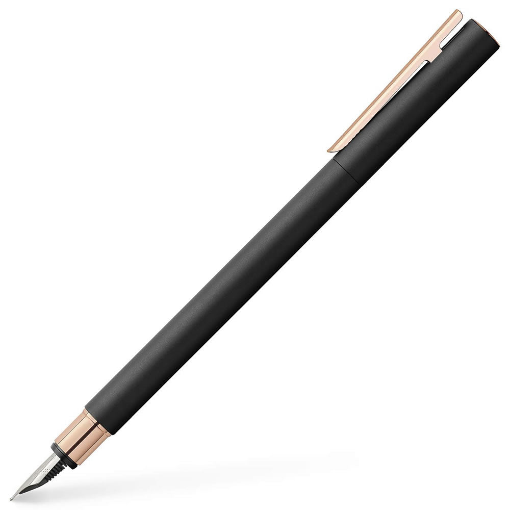 With its slim, sleek profile and on-trend colour scheme this Black and Rose Gold Neo Slim Fountain Pen from Faber Castell is designed to appease the tastes and writing preferences of the young professionals and trend-setters of the modern world. The matte black barrel is complemented perfectly by flashes of shiny rose gold for a pen that looks stylish but has the reliable craftsmanship of Faber Castell behind it.