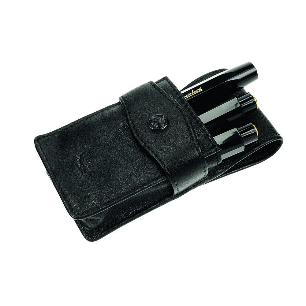 The Kaweco Flap Pen Pouch is made to fit 3 Kaweco Sport pen or pencil, with or without clips and is handmade of soft black leather with 'Kaweco'embossed on the front.