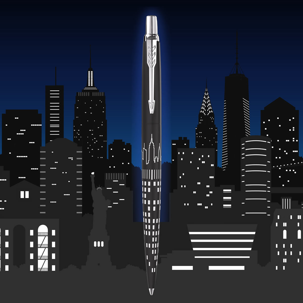 The first release of Parker's latest Jotter collection, the Global Icons, this Parker Jotter Special Edition NYC Ballpoint Pen pays homage to the city that never sleeps with its black and silver pattern that reflects the glowing lights of New York City at night.