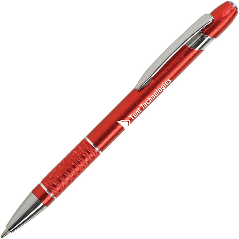 This sleek metal ballpoint pens comes with a contemporary metallic finish and ridged detailing on the barrel. These engraved pens have and easy to use pouch button mechanism and a large engraving space to accommodate your text. We can also add some simple logos. If you would like more information on logo engraving please get in touch