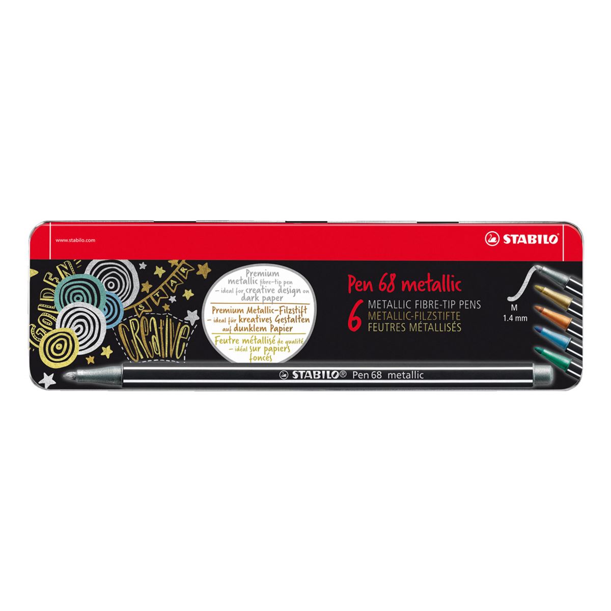 STABILO Pen 68 Metallic Felt Tips - Set of 6 - Tin Gift Case