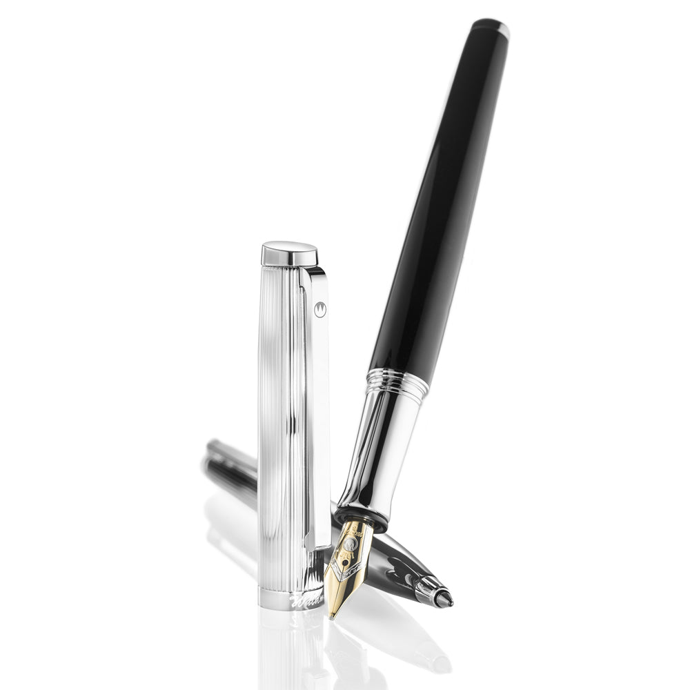 Sterling Silver Waldmann Tuscany Black Fountain Pen