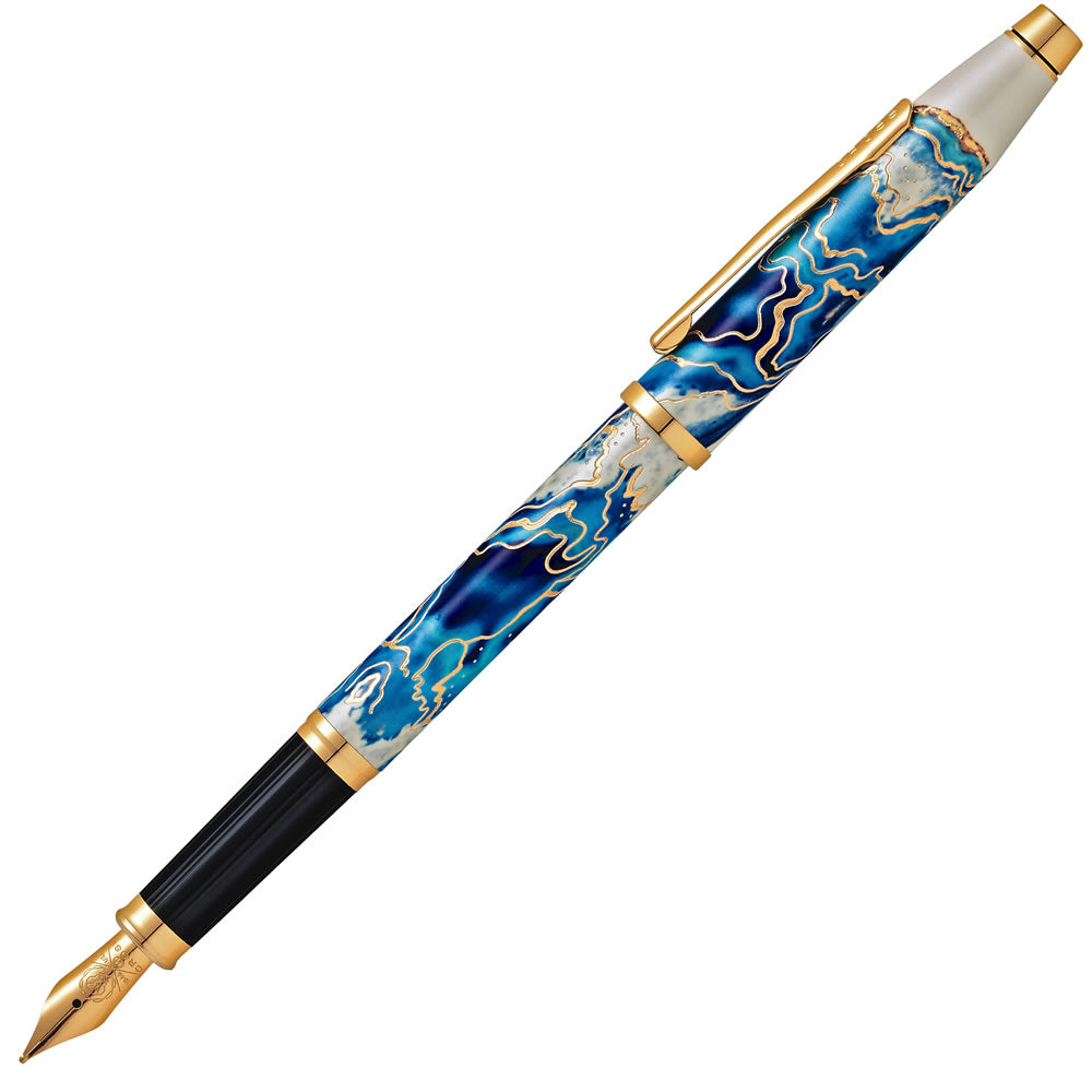 Inspired by the iconic lagoons of Malta and their deep azure hues, this Cross Wanderlust Fountain Pen is decorated with swirling blues and turquoises that emanate the sea washing across the shores of this archipelago. To highlight these colours Cross have complemented them with gold-plated engraving and finishes for a pen that whisks you away to a Mediterranean hideaway.