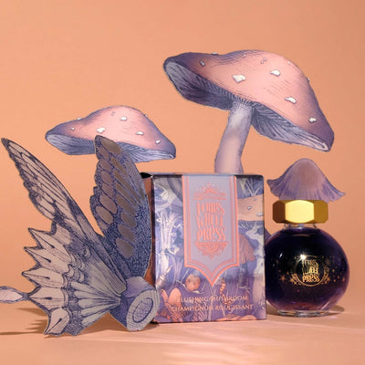 This Blushing Mushroom ink transports you into a world where you're teeny tiny and wandering beneath the shade of mushroom caps, your perspective changing with every step. Blushing Mushroom is a high shading ink with a Light Purple base and Rose Gold shimmer.