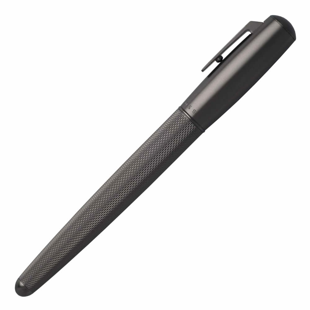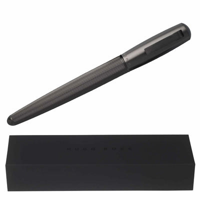 In line with the Tire Range, the Hugo Boss Pure Collection has been inspired by sports car tire prints. With an iconic aerodynamic silhouette complete with smooth body textures and the finishing touch of the engraved barrel The Hugo Boss Pure Matte Dark Chrome Rollerball Pen is the ideal pen for a modern yet sophisticated look.