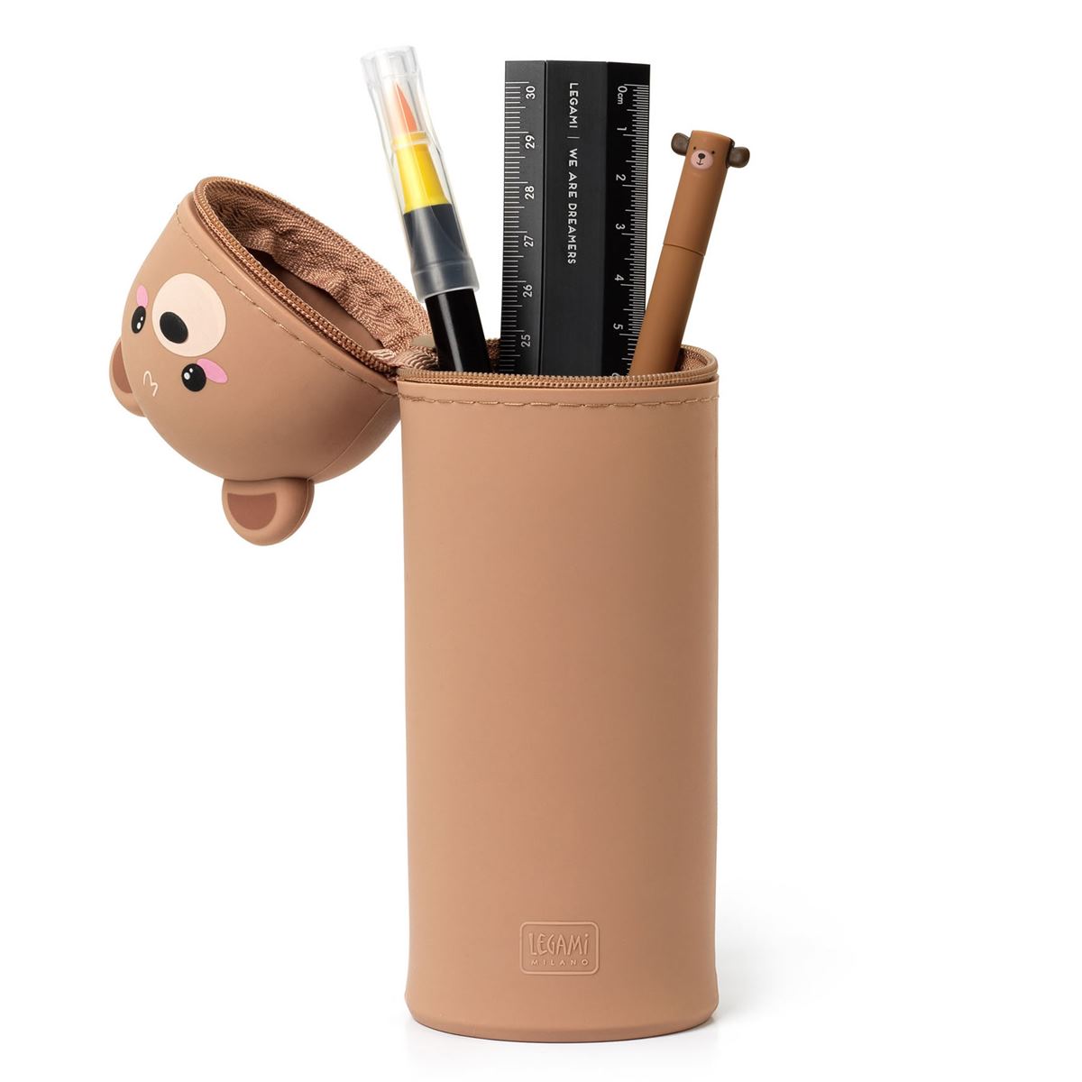 Cute and functional, this Legami Kawaii Teddy Bear Pencil Case can be used as a pen holder and pencil case due to its clever design.