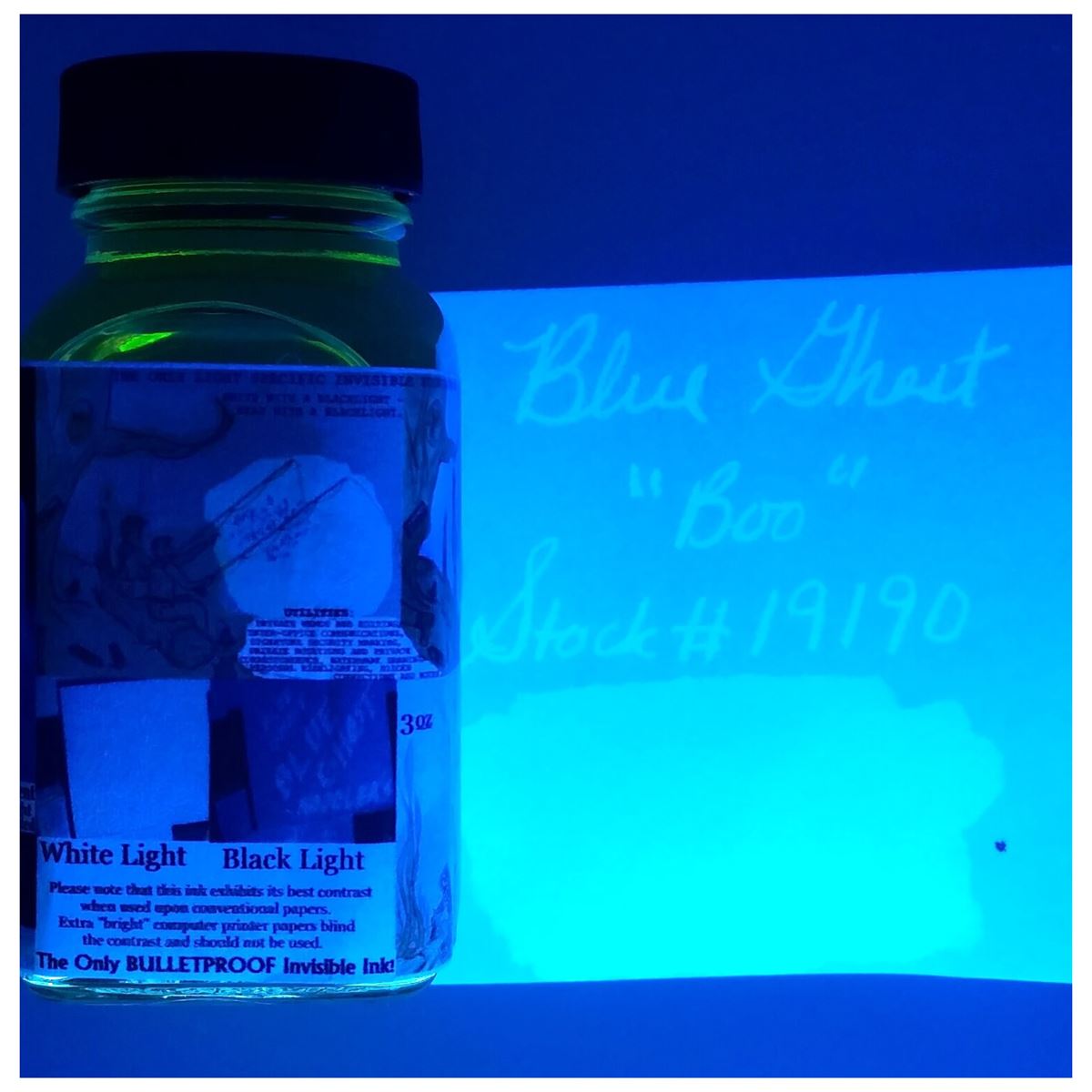 Blue Ghost is a clear invisible ink that will glow under UV light, use it to write secret messages or even passwords. Top Tip: Mix with your favourite ink to turn it fluorescent!