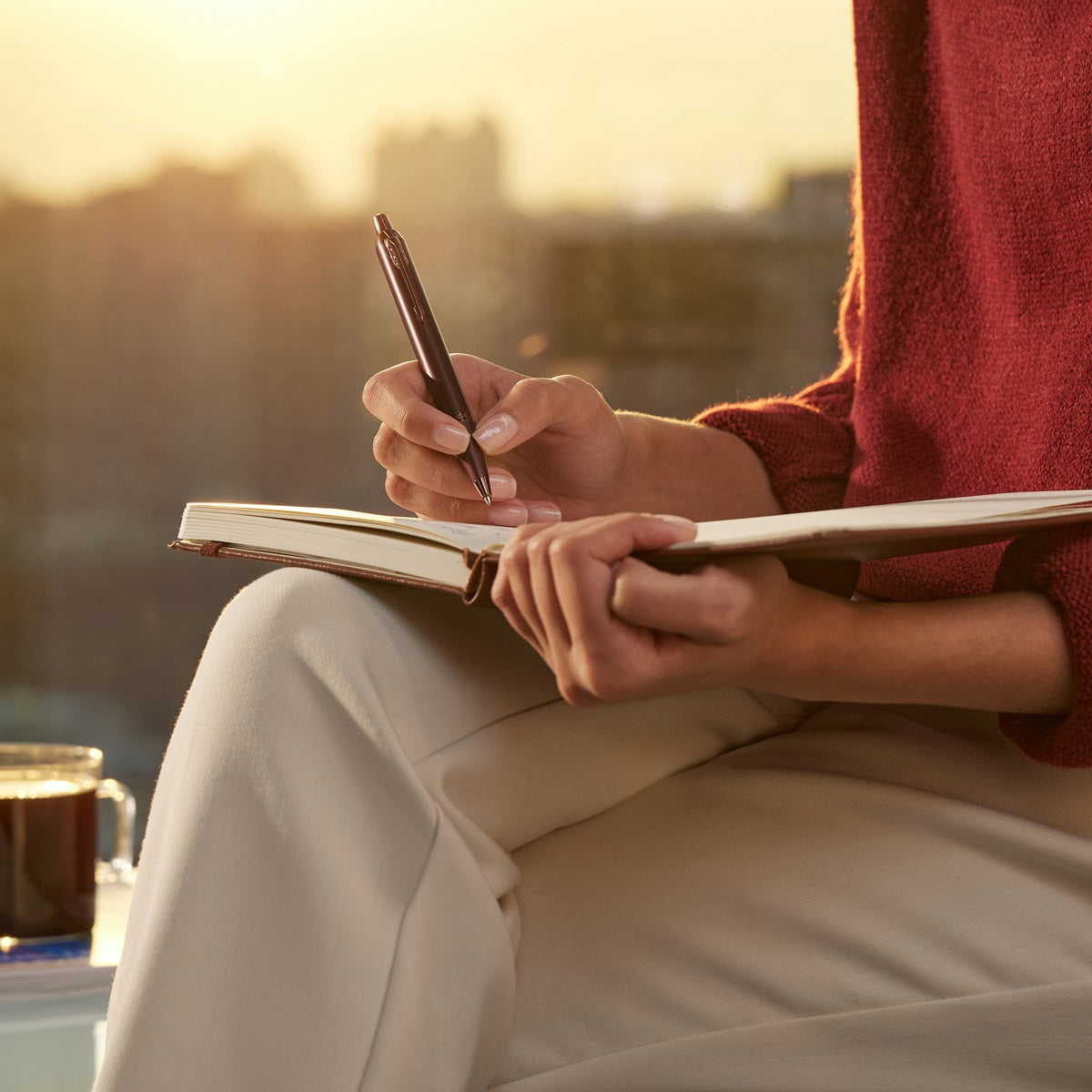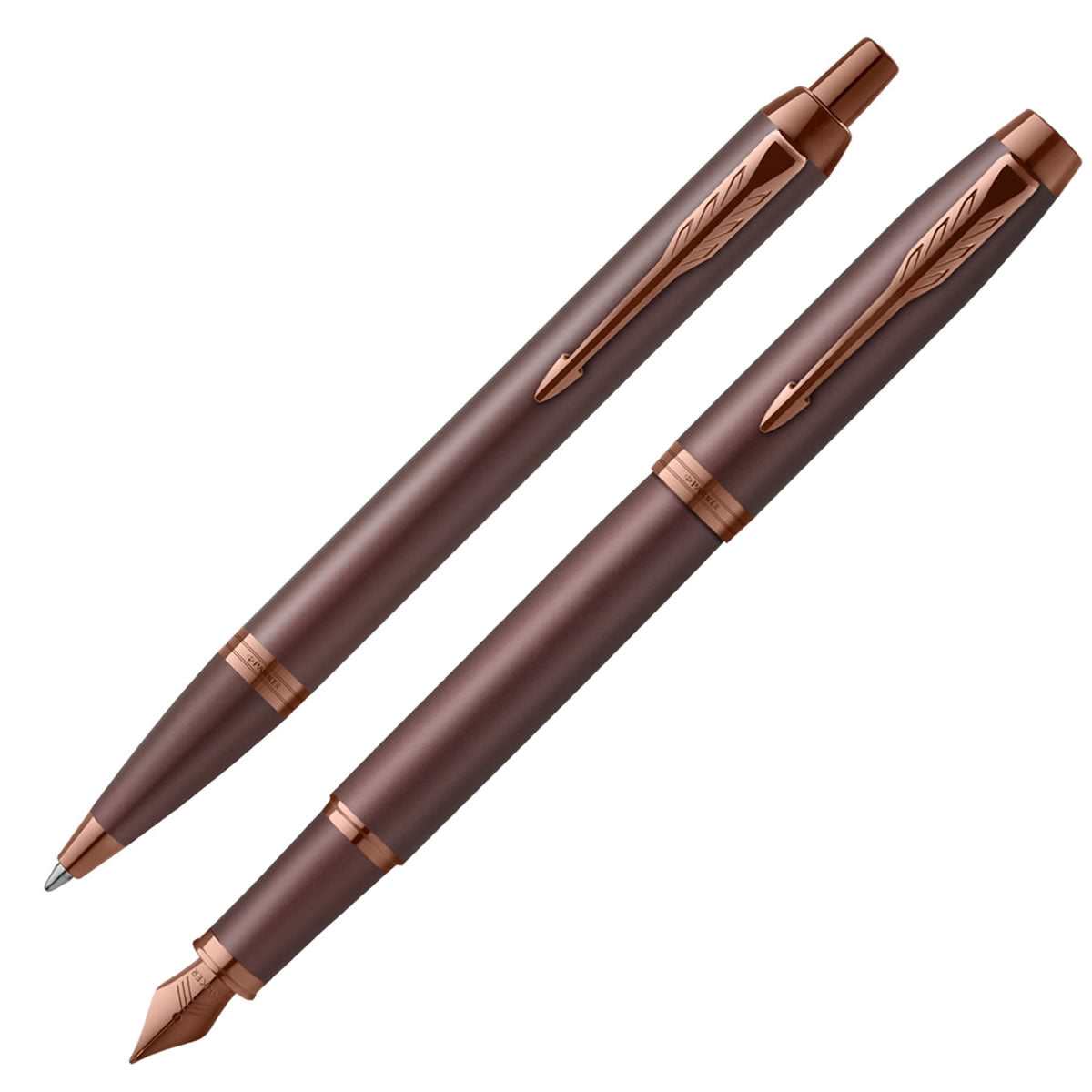 The Parker IM Monochrome Burgundy Edition Ballpoint & Fountain Pen Set is the perfect blend of style and utility for young professionals. Its matte burgundy lacquer on the cap and barrel and its burgundy satin plastic shell and PVD trim make it an eye-catching writing instrument.