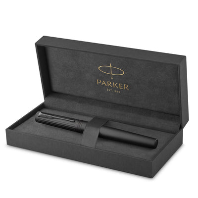 Discover the peak of luxurious writing with the Parker Ingenuity Black Fountain Pen. Crafted with precision, this statement pen offers a bold profile and noticeable weight in a sleek full-matte black finish with metallic black accents. Its intricate panelling design on both the cap and grip section provides a truly tactile writing experience. All of this and more arrives in an exquisite Parker gift box making it the perfect gift for any writing enthusiast.