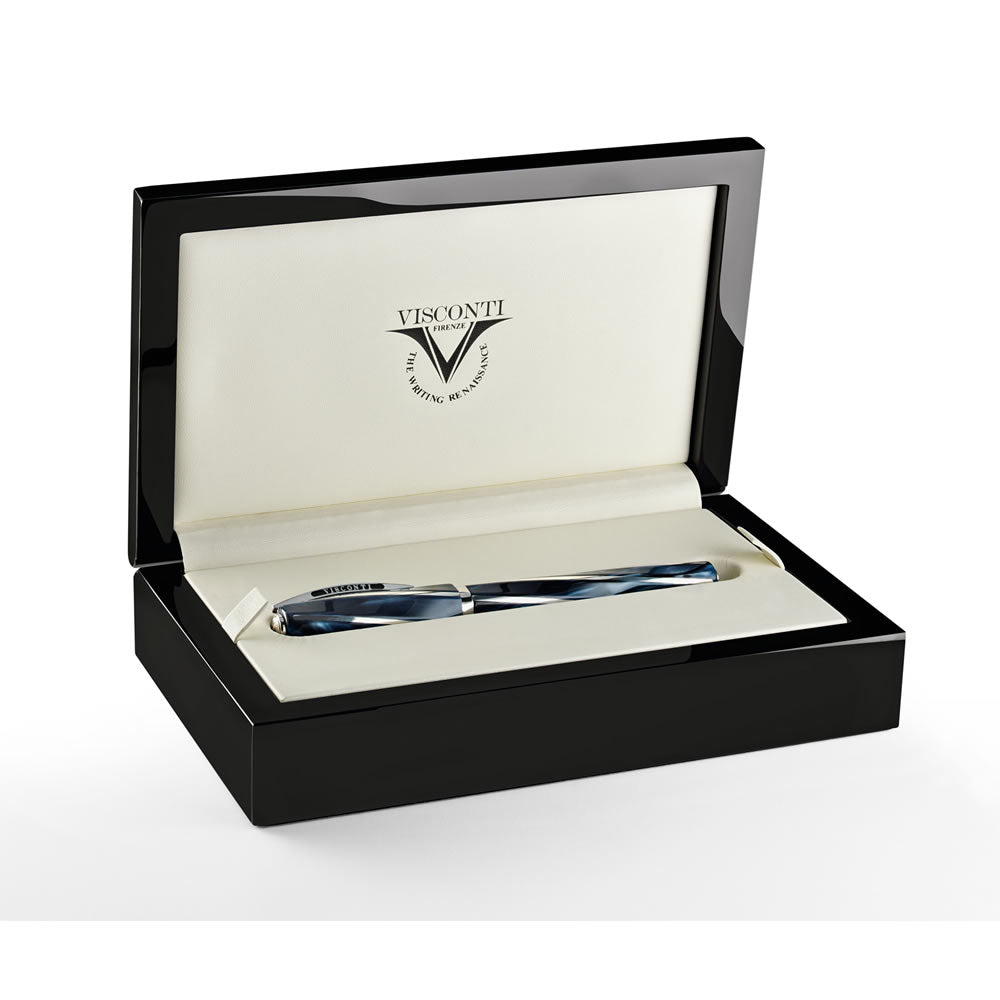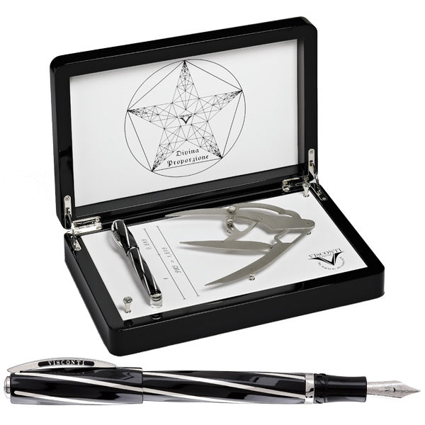 The simply stunning Visconti Divina range, including this fabulous Visconti - Divina Black Oversize Rollerball Pen, is a collection of unique writing instruments more perfect in form than even the most precisely cut gemstone. The gorgeous black barrel gently enveloped by a beautiful sterling silver spiral and trims has been crafted to the perfect proportion based on the golden or divine number of 1.618. This number which has been said to transmit the key of knowledge is the ideal ratio in western art and science.
