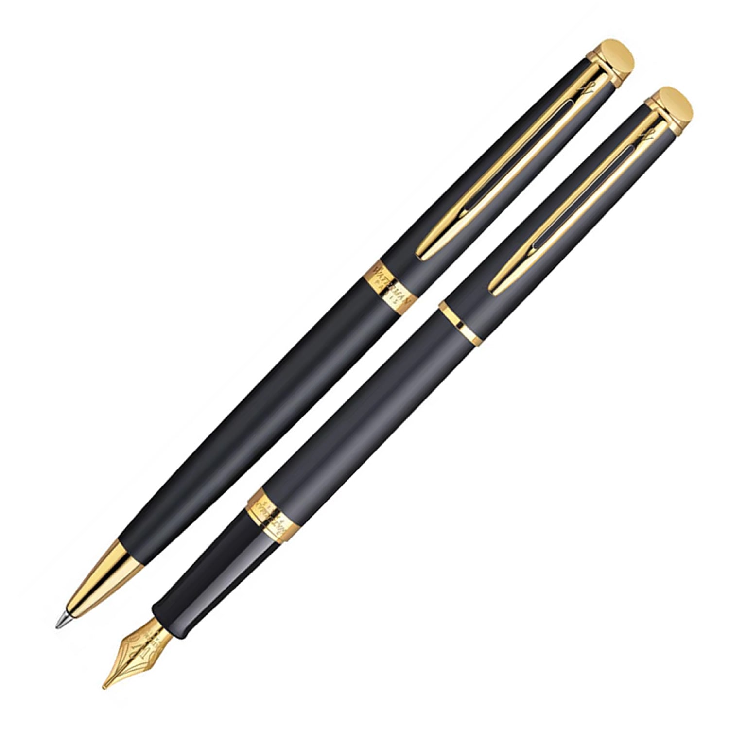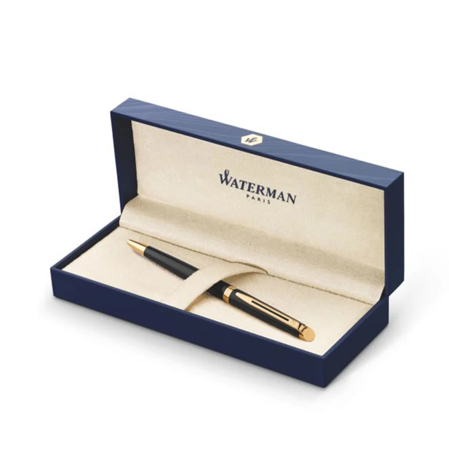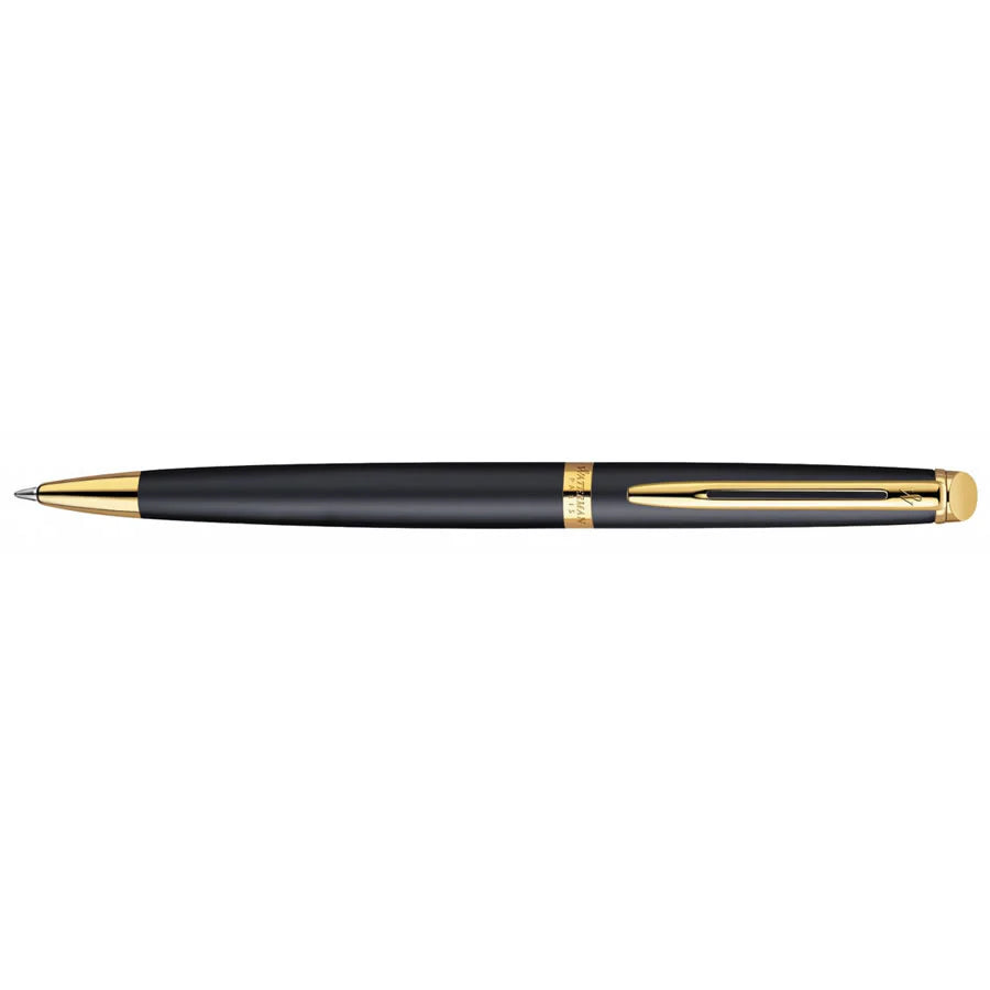 A subtle yet elegant addition to the Waterman range the Waterman Hemisphere is the ultimate in contemporary design and practicality - a must have accessory that fits in any place and anytime. This Waterman Hemisphere Matt Black Gold Trim Ballpoint & Fountain Pen Set is no exception with a classic, timeless finish, if your looking for a sophisticated style statement look no further.