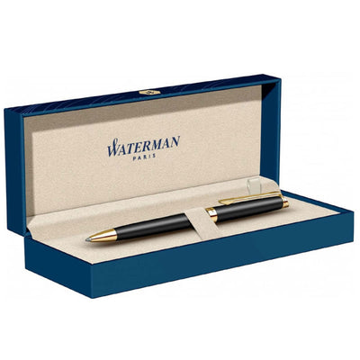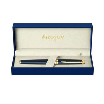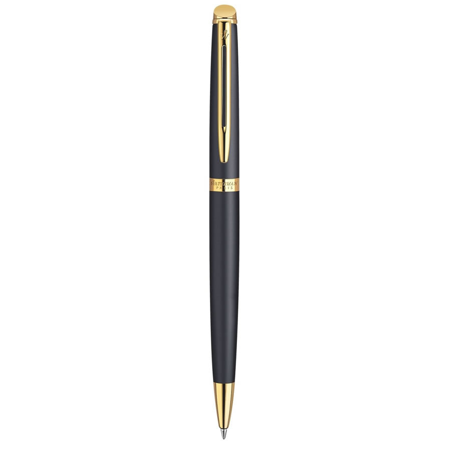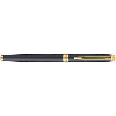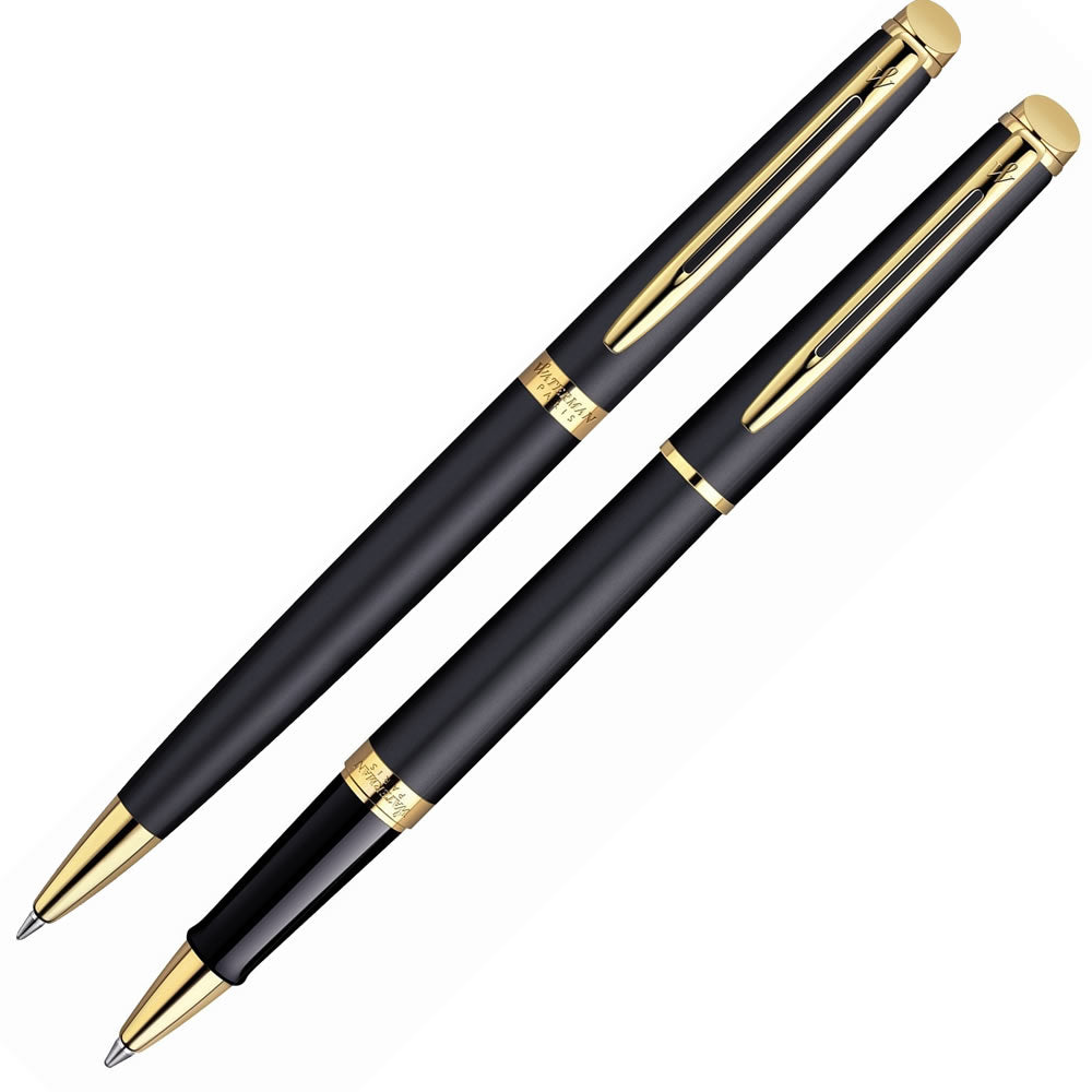 A subtle yet elegant addition to the Waterman range the Waterman Hemisphere is the ultimate in contemporary design and practicality - a must have accessory that fits in any place and anytime. This Waterman Hemisphere Black with Gold Trim Ballpoint Pen & Rollerball Pen Set is no exception with clean fluid lines and a sleek, modern finish.
