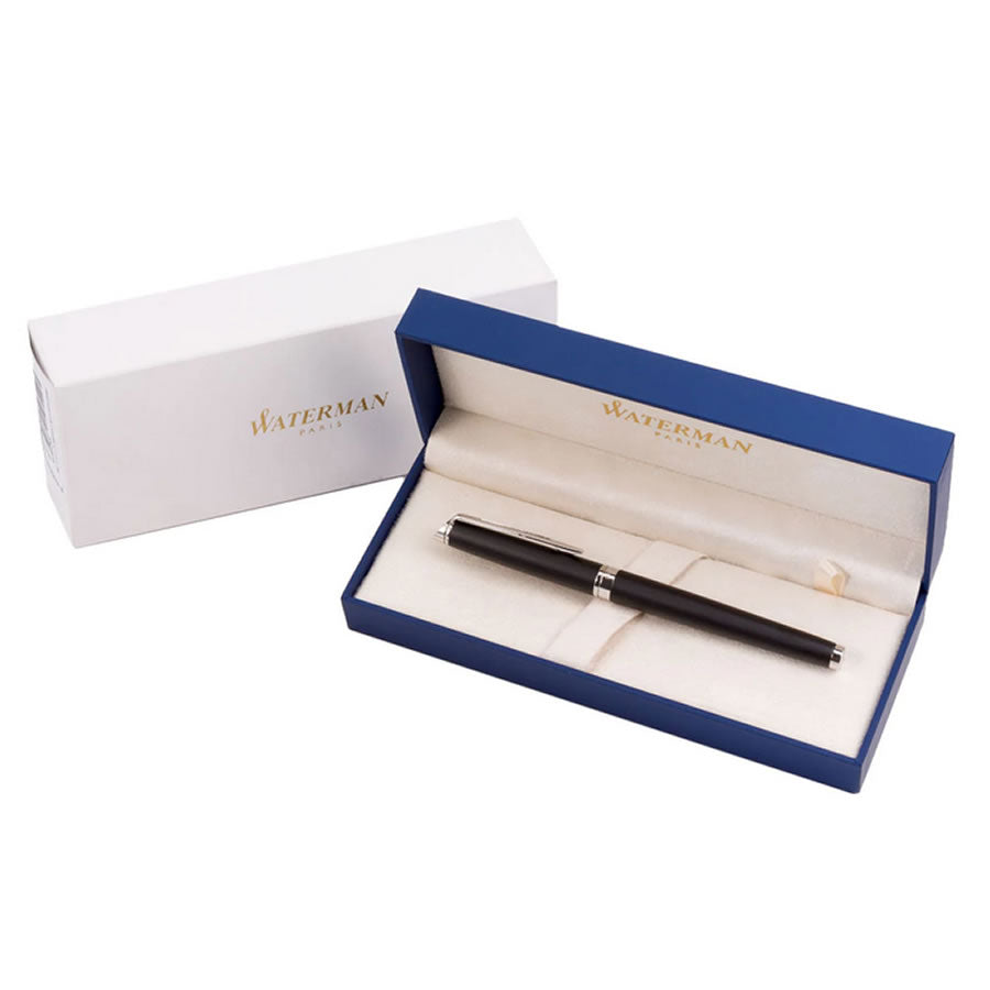A light weight pen which makes it perfect for everyday use this Waterman Hemisphere Rollerball pen features an elegant cigar shaped barrel which is brought to life with the combination of high gloss black lacquer and sleek silver coloured chrome trims. Not out of place in a business man pocket or a wife's handbag this luxury pen has a timeless style which has proved most popular with both men and woman.